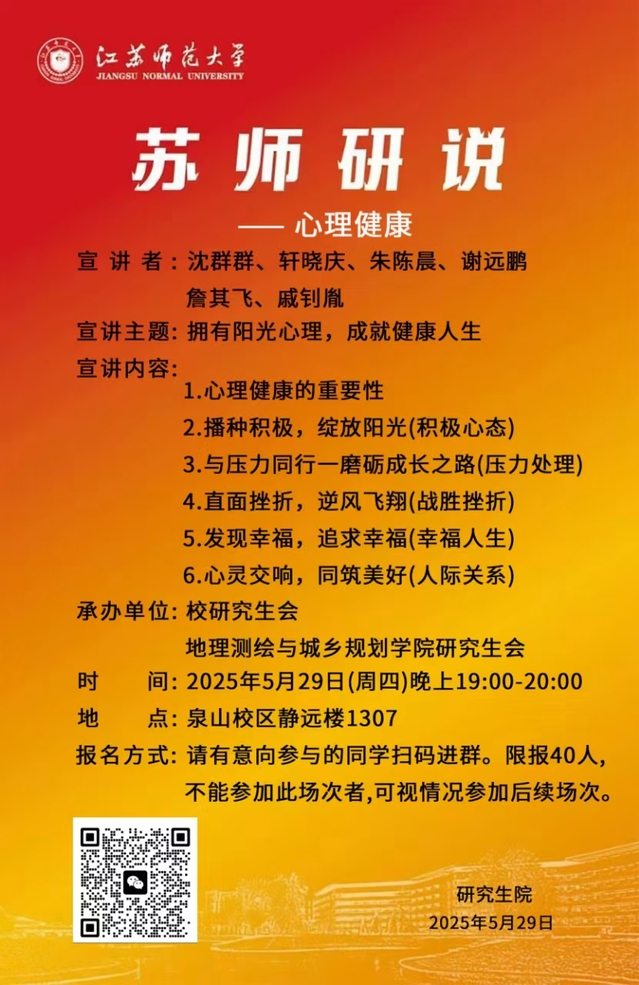 关于举办第十九期研究生“苏师研说”活动的通知