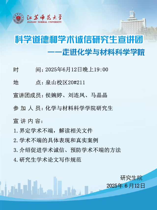 科学道德和学术诚信研究生宣讲团走进化学与材料科学学院