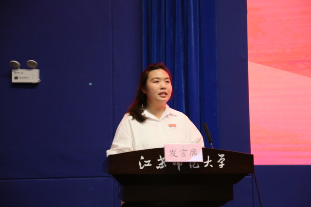 文学院2025级非全日制学科教学(语文)专业胡宇晴作为新生代表发言。她表达了成为一名江苏师大学子的荣幸与感恩,号召全体新生秉承“崇德厚学,励志敏行”的校训,崇德为基,德润初心;厚学为舟,深研致远;励志为帆,志拓新境;敏行为径,知行相生。