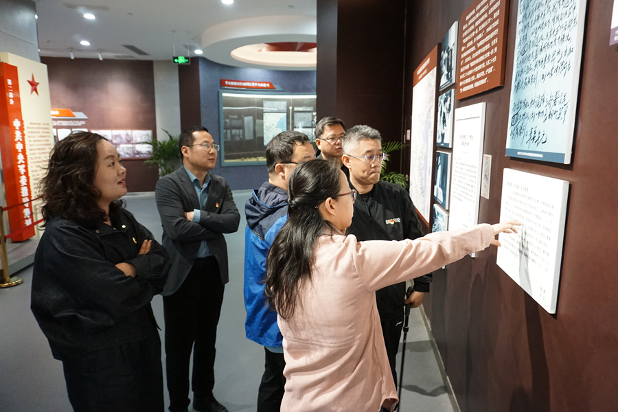 彭雪枫是中国工农红军和新四军杰出指挥员、军事家,被毛泽东、朱德誉为“共产党人的好榜样”。上午11时许,支部又来到了彭雪枫纪念馆。纪念馆前,远远就能望见彭雪枫将军的巨型雕像。支部党员驻足瞻仰,感受彭将军的英雄气概。他一身戎装,从容端坐,手中紧握着他的“三件宝”之一——《拂晓报》。在讲解员的引导下,支部党员步入彭雪枫纪念馆,认真参观馆内展陈。一楼展厅设展览馆、将军馆、拂晓影院、报告厅4个板块,二楼展厅全面展现了宿迁境内抗日民主根据地廉政建设和廉政精神全貌。大家通过听讲解、看实物、观图片、欣赏视频等方式,追寻了彭将军革命足迹,缅怀了那段烽火岁月,深入了解了彭将军出生入死,致力革命二十年的光辉斗争历程。支部党员还在纪念馆广场上,面向鲜红的中国共产党党旗,举起右拳,一起重温了入党誓词。